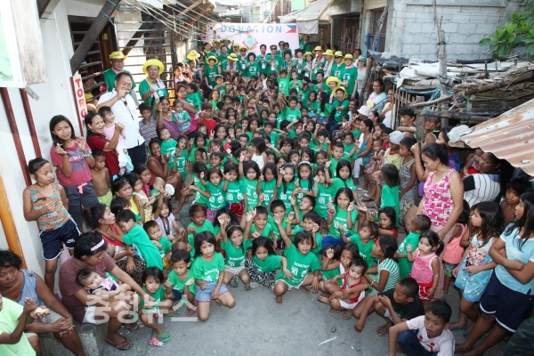 또한 700명의 학생에게 빵과 음료수를 나누어 주는 봉사를 펼쳤다. 바로 이어 바랑가이 주민센터를 방문하여 직접 운송해간 LCD TV를 기증하기도 하였다. 이어 빈민지역인 바코르시 바랑가이에 위치한 수상마을을 찾아 대나무다리 수리봉사와 30가정에 대한 집수리 봉사 및 장판교체봉사, 200명의 어린이들에게 목욕봉사와 티셔츠를 나누어주었고, 500명의 어린이들에게 슬리퍼를 나누어주는 2일차 봉사를 펼쳤다.