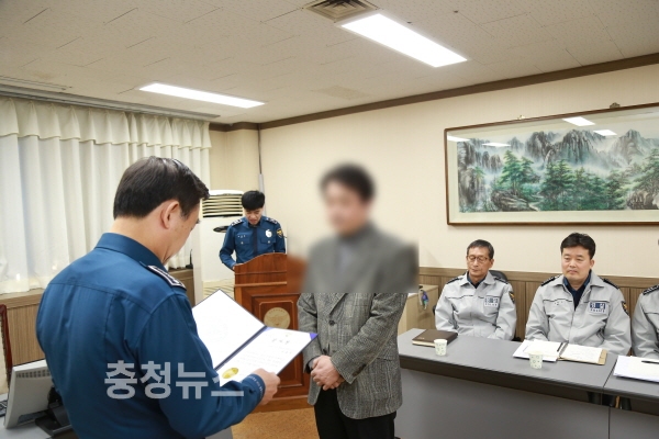 대전중부경찰서 생활안전계는 3일 경찰서 사랑홀에서 대전 중구에 거주하는 시민A씨(남, 50세)에게 차량털이범을 발견하고 신속히 112로 신고하여 절도범 검거에 기여한 공로로 경찰서장 감사장과 신고보상금을 수여했다.