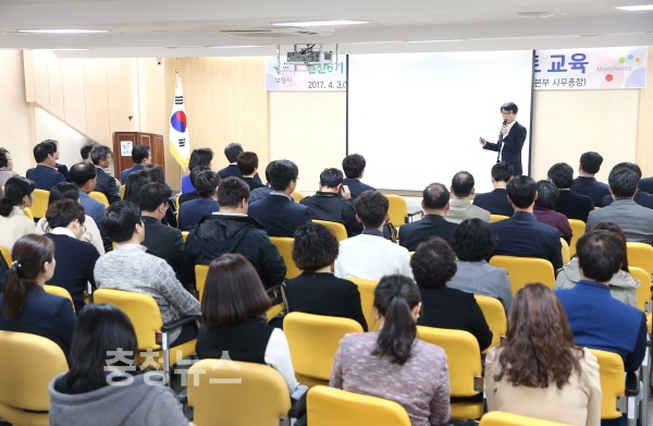 이번 교육은 공약이행평가단의 합리적 평가와 담당 공무원들의 공약 관리를 돕기 위한 것으로 한국매니페스토실천본부 이광재 사무총장을 초청해 실시했다.