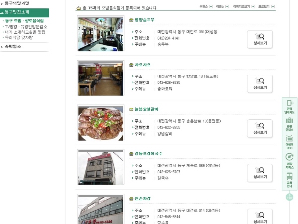 동구 홈페이지 맛집 코너 운영