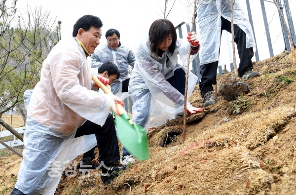 이번 나무심기 행사는 뿌리공원 성씨조형물 추가 조성에 따라 나지로 노출된 지역의 경관개선을 위해 직원 200여 명이 참여한 가운데 산수유와 산딸나무 등 2종 700본을 식재했다.
