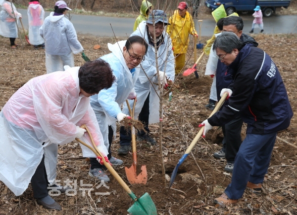 이날 행사는 풍요로운 산림환경 조성과 함께 양질의 산림자원 육성을 위해 마련됐으며 반가운 봄비가 촉촉이 대지를 적시는 가운데 주민, 공무원 등 170여 명이 참여해 고로쇠나무, 산사나무 등 170여 주를 심었다.
