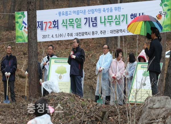 대전 동구(구청장 한현택)는 5일 추동 대청호생태관 부근 산24-1번지 일원에서 제72회 식목일 나무심기 행사를 가졌다.