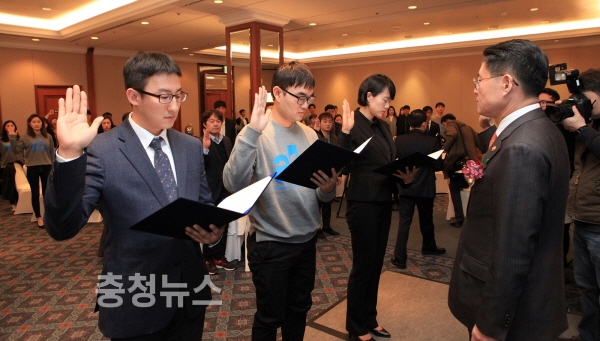 농식품 청년해외개척단(AFLO) 발대식 중 선서 모습
