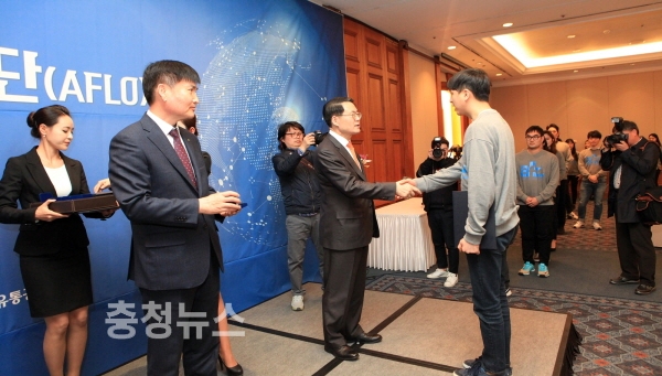 지난 4일 서울 중구 소재 밀레니엄 힐튼 호텔에서 열린 「농식품 청년해외개척단 발대식」에는 농식품부 김재수 장관, aT 백진석 식품수출이사, 청년개척단 20명, 농식품 수출업체 등 60여명이 참석하여 청년의 도전정신과 참신한 아이디어를 활용한 우리 농식품 시장다변화에 대한 ‘앞으로(AFLO)’의 의지를 다졌다.