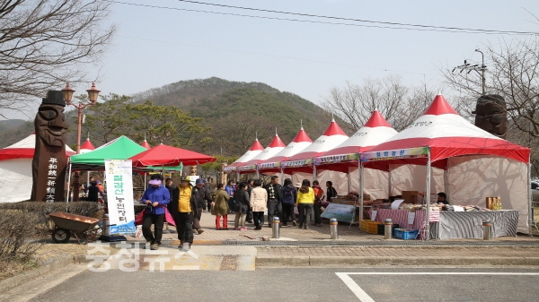 특히 칠갑산이 빼어난 경관과 편안한 트레킹 코스로 각광받으며 최근 주말 평균 3~5000명의 상춘객들이 몰리면서 봄나물, 채소, 제철과일 등 신선농산물과 우수 가공품이 큰 인기를 끌고 있다.