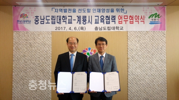 충남 계룡시(시장 최홍묵)는 지난 6일 충남도립대학교(총장 구본충)와 교육협력을 위한 업무협약(MOU)을 체결했다고 밝혔다.