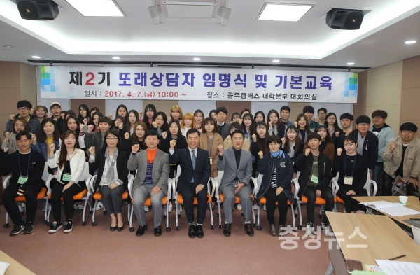 공주대학교(총장직무대리 김희수)는 7일 대학본부 대회의실에서 박승철 행복상담센터장를 비롯한 관계자, 학생 등이 참석한 가운데 2017학년도에 활동할 또래상담자 104명의 임명식 행사를 가졌다.