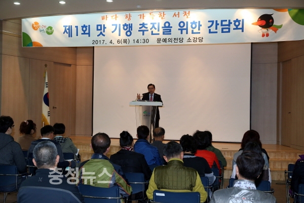 충남 서천군(군수 노박래)은 6일 문예의전당에서 모범음식점, 향토 맛 집, 라온제나 특화거리 영업주 등 70여 명을 대상으로 ‘서천 맛 기행’ 책자 제작 추진을 위한 간담회를 실시했다.