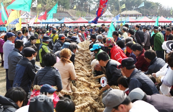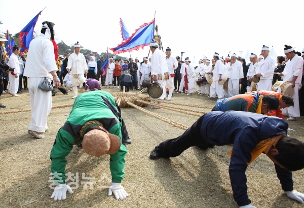 8일 당진에서 열리고 있는 500년 역사의 기지시줄다리기 민속축제가 화합과 희망의 줄을 당기고 있다.