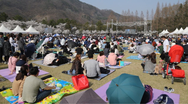 특히 8일 대표 프로그램인 ‘로하스벚꽃뮤직페스티벌’이 진행됐으며, 축제 컨셉과 벚꽃 개화시기가 잘 맞아 떨어져 개막식이 치러진 밤 7시에는 10,000㎡가 넘는 동편광장이 돗자리와 인파로 가득 차는 진풍경이 연출됐다.
