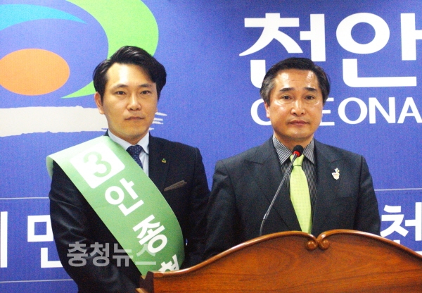 천안시의원선거 나선거구 국민의당 안종혁후보와 함께 한 기자회견에서 김용필 도의원은 “대선국면에서 치러지는 시의원 보궐선거가 시민들의 관심 저조로 자칫 후보들만의 선거가 될 수 있다”며 “천안시민들의 적극적인 참여를 통해 천안의 지방자치가 한 단계 발전할 수 있도록 해야 한다”고 말했다.