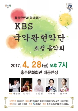 KBS국악관현악단 초청 음악회가 오는 28일 오후 7시에 홍성 홍주 문화회관에서 개최된다.