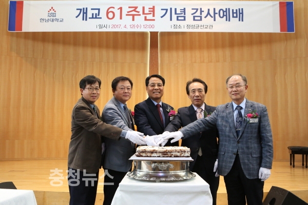 이덕훈 총장은 “개교61주년을 맞이한 올해 구성원들의 단합된 노력으로 사회맞춤형 산학협력선도대학(LINC+)육성사업에 선정되는 쾌거를 이루었다. 앞으로도 구성원들이 합심해서 새로운 한남의 역사를 써나가자”고 말했다.
