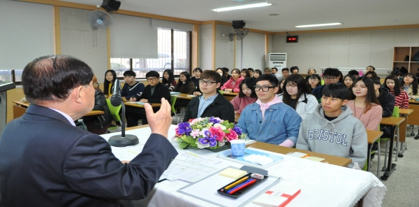 지난 12일 오전 건양대 논산 창의융합캠퍼스에서 열린 재활복지교육대학 심리상담치료학과 3학년 45명과의 간담회에서 김 총장은 4차산업혁명 시대가 다가오고 있음을 학생들에게 이야기하며 “학생들이 건양인으로서 자부심을 갖고 정직하고 실력을 갖춘 인재가 된다면 사회에 나가서도 항상 중심이 되는 인물이 될 수 있다”고 강조했다.