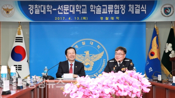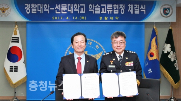 선문대는 13일 경찰대학 본관 청람회실에서 경찰대와 학술 및 행정 분야의 교류를 위한 협약을 체결했다.