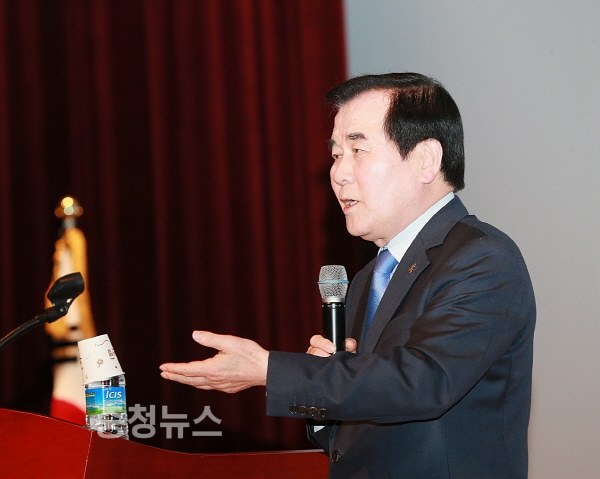 김지철 교육감이 참석자들에게 참학력과 혁심역량를 갖춘 미래인재 양성을 당부하고 있다.