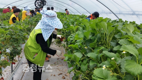 발대식과 함께 충남농협 임직원 120여명은 공주시 계룡면 화헌리 농가를 방문해 딸기 꽃대 정리 작업을 실시하며 농가에 힘을 보탰다. 또 농가소득 5천만원 달성 및 지역농축협 균형발전을 위한 농협금융의 역할을 제고하기 위해 공주관내 농축협에 영농지원차량 11대를 지원하였다.
