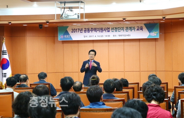 대전 유성구(구청장 허태정)는 2017년도 공동주택 지원사업과 관련 보조금의 투명한 집행을 위해 사업선정단지 관계자 70여명을 대상으로 보조금 집행교육을 14일 실시했다고 밝혔다.