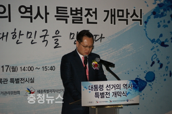 세종특별자치시선거관리위원회와 대통령기록관은 17일 대통령기록관 내 상설전시관(1층, 로비)에서 "대통령의 선거 역사 특별전, ‘선거' 대한민국을 만들다" 개막식을 개최했다.