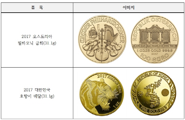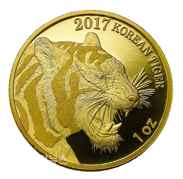조폐공사가 내놓은 ‘2017 호랑이 불리온 메달’은 공사가 99.99%의 순도와 중량을 보증하는 순금으로 3종(31.1g, 15.55g, 7.78g)이 나와 있다. 위변조를 방지하기 위해 뒷면에는 보는 각도에 따라 글자가 변화(Au↔9999)하는 특수기술인 잠상기법을, 보증서에는 일련번호, 은화와 은선 등을 적용했다.