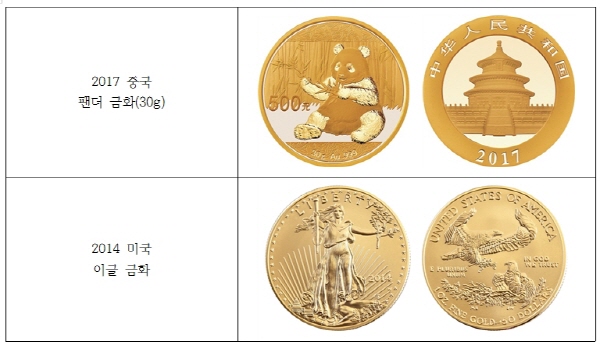 유달리 금을 좋아하는 중국은 ‘팬더’, 미국은 대통령의 문양이기도 한 ‘독수리(이글)’, 호주는 ‘캥거루’가 새겨져 있다. 이에 비해 가을 단풍이 유명한 캐나다는 ‘단풍잎’, 모차르트 등 세계적인 음악가를 배출한 오스트리아는 ‘필하모닉’ 오케스트라를 문양으로 활용하고 있다.