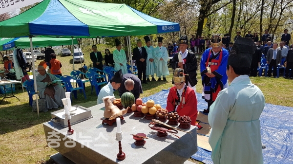 이날 두릉윤성보존현창회(회장 전갑수) 주관으로 거행된 위령제는 제향, 천도송, 진혼굿 순으로 진행됐다. 제향은 초헌관 이석화 청양군수, 아헌관 김태영 정산농협 조합장, 종헌관 황인세 정상유도회장이 각각 맡아 거행됐다.