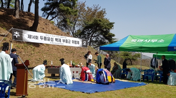 충남 청양군은 19일 목면 지곡리 두릉윤성 정상에서 이석화 청양군수를 비롯해 각급 기관·단체장 및 주민 등 200여명이 참석한 가운데 백제부흥군의 고혼을 위로하는 제14회 두릉윤성 백제부흥군 위령제를 봉행했다.