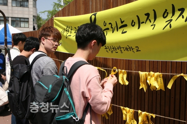 한편, 한밭대 학생들의 노란리본 달기는 오는 21일까지 계속된다.