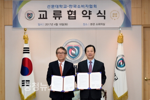 선문대학교(총장 황선조)와 한국소비자협회(회장 신현두)가 지난 18일 본관 10층 소회의실에서 자동차 사고기록장치(EDR) 분석 교육과정 공동개설을 위해 협약식을 체결했다.