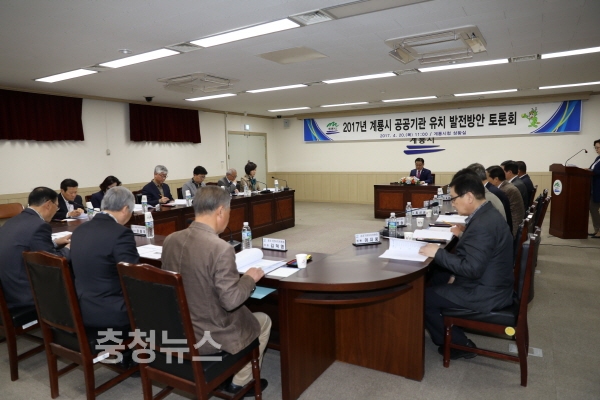 충남 계룡시(시장 최홍묵)는 20일 시청 상황실에서 최홍묵 시장을 비롯한 공공기관 유치위원회 위원 17명이 참석한 가운데 2017년 계룡시 공공기관 유치위원회 회의를 개최했다.