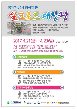 한편 기타 자세한 사항은 중앙시장 문화관광형시장 육성사업단(☎ 042-257-9501)으로 문의하면 된다.
