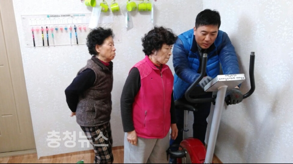 거점 마을회관을 선별하여 자가발전 자전거(싸일렉)를 설치하고 보건소 재활사업 담당자가 마을회관을 찾아가 운동지도와 물리치료를 실시한다.