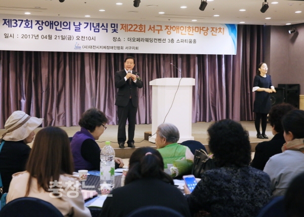 대전 서구(구청장 장종태)는 제37회 장애인의 날을 맞이해 지난 21일, 더오페라웨딩컨벤션에서 장애인, 가족, 자원봉사자 등 650여 명이 참여한 가운데 ‘제22회 ‘서구 장애인 한마당 잔치’를 개최했다고 밝혔다.