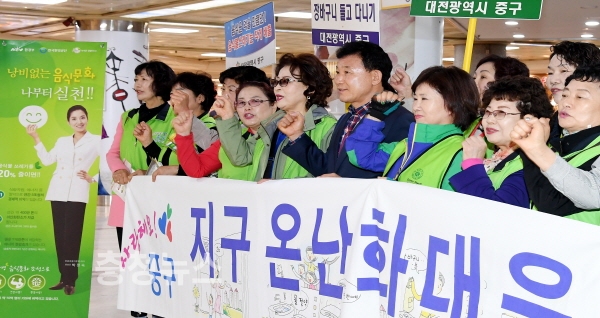 대전 중구(구청장 박용갑)는지난 21일 기후변화주간을 맞아 중앙로지하상가 일원에서 지구온난화 방지 등 기후변화대응을 위해 ‘기후변화주간 사진전시 및 녹색생활 캠페인’을 전개했다.