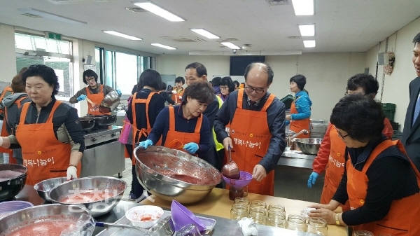 유찬형 본부장과 농가주부모임 연합회원(회장 김금자)들이 함께 딸기잼 만들기 행사를 가졌다.