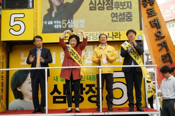 심 후보는 이날 오후 유성구 궁동 로데오거리에서 가진 유세에서 “이번 대선은 청년 학생들이 결정한다"며 "과감한 개혁으로 청년들의 삶을 바꾸고 노동이 당당한 대한민국을 이끌겠다"고 밝혔다.