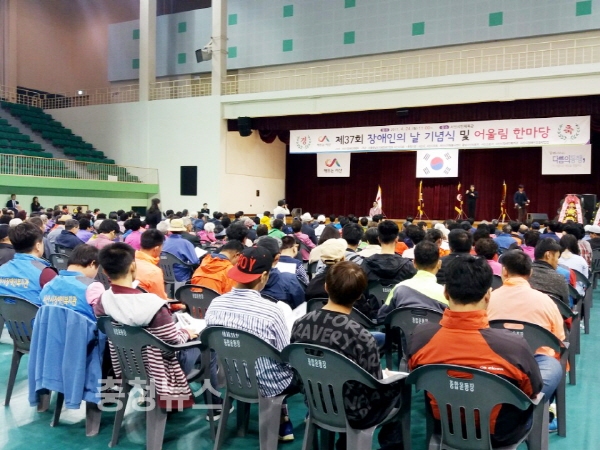 지난24일 서산시민체육관에서 개최돤 제37회 장애인의 날 기념식 및 어울림한마당 행사 모습