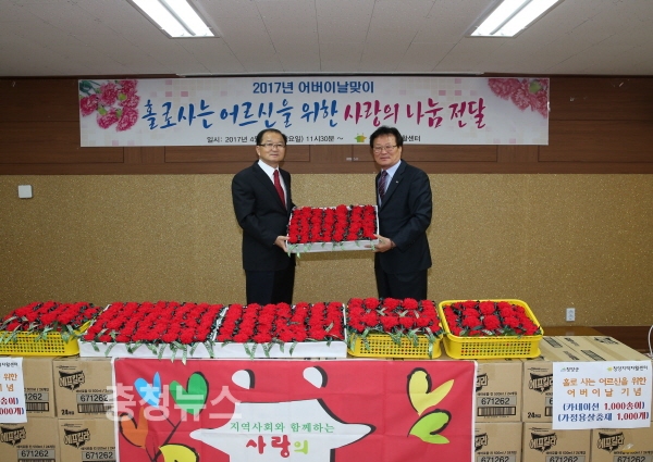 매년 독거어르신들에게 후원행사를 개최하고 있는 청양지역자활센터는 올해 푸른약국(청양읍)과 효실천요양센터로부터 카네이션 1000개, 에프킬라 1000개, 스티커 1000장 제작의 후원을 받았다.