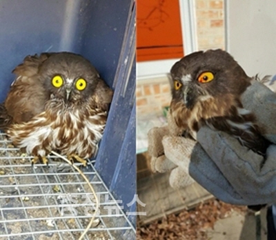 지난 15일 규암 돌말사거리 인근 집 유리창에 부딪쳐 치료 마쳐