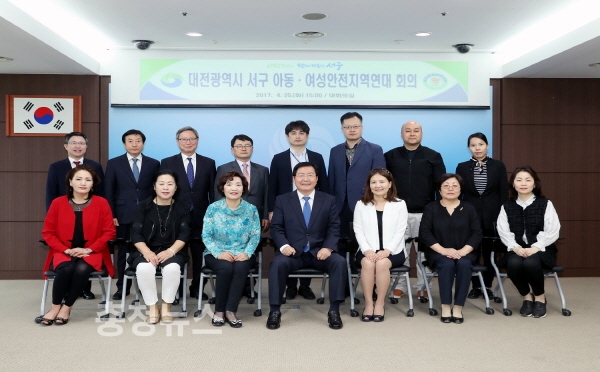 대전 서구(구청장 장종태)는 25일 구청 대회의실에서 교육기관, 경찰서, 아동‧여성 관련시설, 학계, 지역주민 대표 등 20여 명이 참석한 가운데, 2017년 ‘아동․여성안전 지역연대 회의’를 개최했다고 밝혔다.