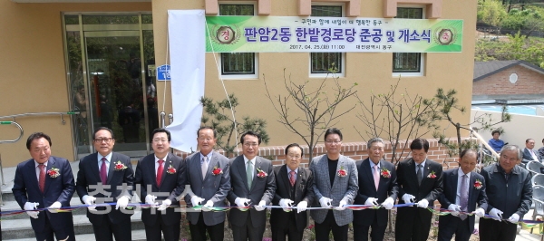 대전 동구(구청장 한현택)는 관내 어르신들의 따뜻한 행복쉼터인 판암2동 한밭경로당 신축에 따른 준공‧개소식을 25일 가졌다고 밝혔다.