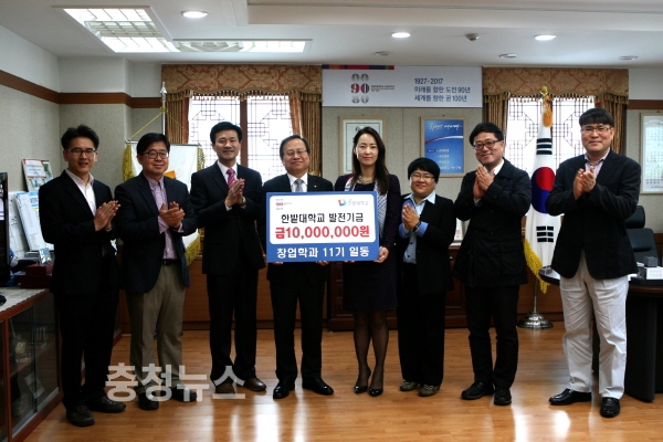 한밭대(총장 송하영)는 창업경영대학원 창업학과 졸업생들이 후배들을 위한 장학금을 기탁했다고 밝혔다.