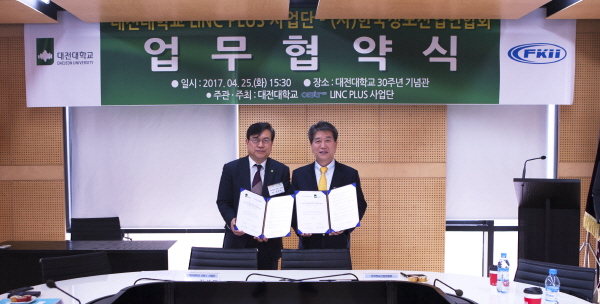 대전대링크플러스사업단(단장 김선태 교수)은 25일 대학 30주년기념관 소회의실에서 (사)한국정보산업연합회(회장 이상현)와 상호 우호증진 및 협력을 위한 업무협약(MOU)을 체결했다.
