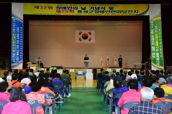 충남 홍성군은 제37회 장애인의 날을 맞이하여 26일 홍주문화체육센터에서 기념식 및 제25회 장애인 한마당 잔치를 개최했다.