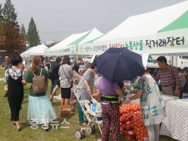 충남 서산시가 영세농가 판로제공을 위해 매 주말마다 운영 중인 농특산물 직거래 장터가 연일 높은 판매실적을 올리면서 큰 호응을 받고 있다.