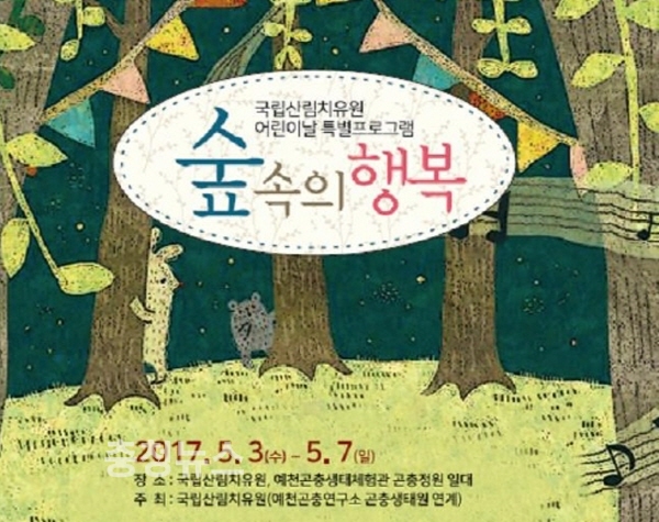 산림청 한국산림복지진흥원(원장 윤영균)은 5월 3∼7일까지 경북 예천곤충연구소·곤충생태원의 곤충체험축제와 연계한 ‘숲 속의 행복’ 프로그램을 진행한다고 30일 밝혔다.