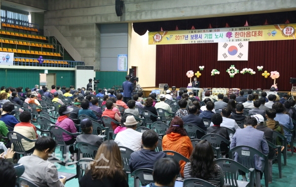 충남 보령시는 근로자의 날을 맞아 기업인과 근로자의 상생과 화합으로 산업평화는 물론, 사기 진작을 위해 1일 대천체육관에서 2017 보령시 기업 노사 효 한마음대회를 개최했다.
