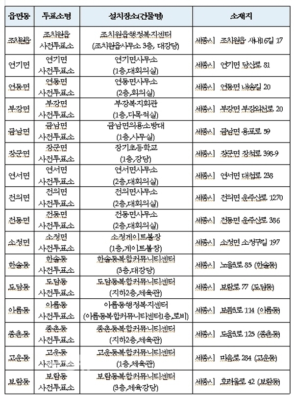 세종시선거관리위원회는 오는 4일과 5일 이틀동안 세종시 관내에 16개 사전투표소를 설치한다고 1일 밝혔다.