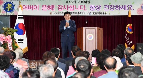 대전 중구(구청장 박용갑)는 2일 대한노인회 중구지회 대강당에서 제45회 어버이날을 맞아 경로효친 사상을 확산하기 위해 중구지회 회원 등 300여 명이 참석한 가운데 기념식을 개최했다.